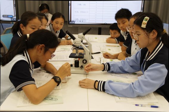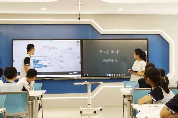 随后,南京市将军山中学的汪秋雨老师在未来教室呈现了七年级研究课《单细胞生物》。基于学生已掌握细胞基本结构,但难以理解“单个细胞即生命体”的学情,汪老师巧妙创设情境,通过“描述一个人完成生命活动需要多少细胞协作”的问题,引出“微观邻居——单细胞生物”的主题。课堂中,教师运用“水域清道夫”“光合小能手”等高度概括的名词激发学生兴趣,组织学生以小组合作形式,借助影像、文字资料、3D模型等多种媒介,探究单细胞生物的营养、排泄、生殖等功能,并开展草履虫趋性实验,深化学生对“结构与功能相适应”生物学观点的理解。